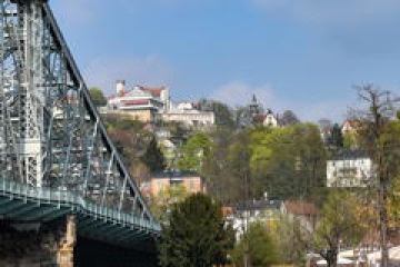 Mit Blick auf die Altstadt Dresdens erkunden Sie die Elblandschaft mit kurzem Halt beim „schönsten Milchladen der Welt – Pfund‘s Molkerei“ und überqueren die legendäre Waldschlösschenbrücke.